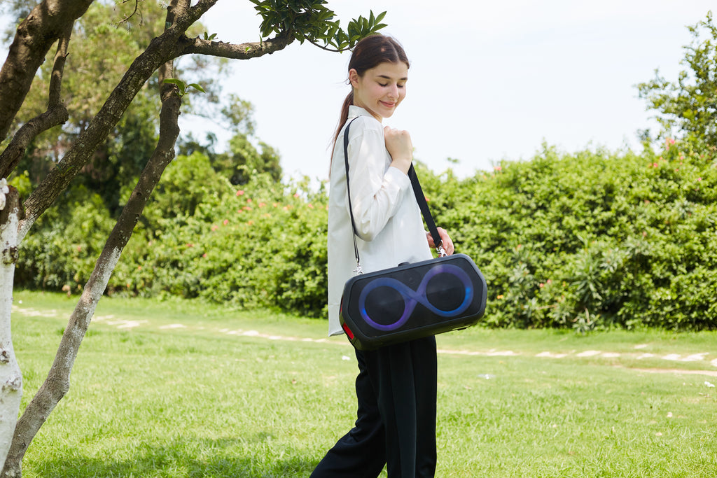 Avec une puissance de sortie de 80 W, des effets d'éclairage couleur RVB et un indice de résistance à l'eau IPX5, ce haut-parleur est parfait pour une utilisation en intérieur et en extérieur. Laissez la musique couler et les bons moments se dérouler !